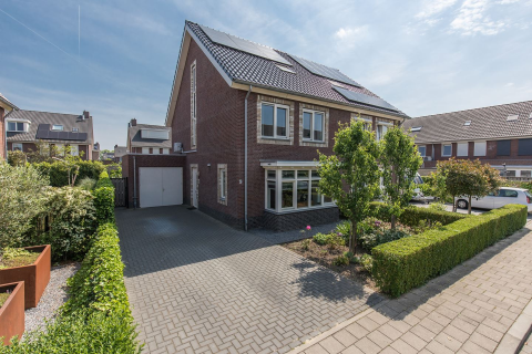 De achtertuin is strak en onderhoudsvriendelijk aangelegd. Direct achter het huis vind je een terras met een elektrisch zonnescherm voor de warme zomerdagen. Verder bestaat de tuin uit kunstgras met enkele bomen en een gezellige loungehoek achterin. Achter in de tuin staat een praktische berging en via de poort bereik je de carport (2022) en je eigen parkeerplaats.